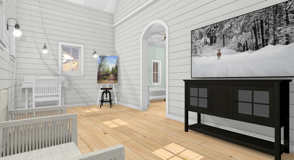 Garage & Bonus Room Interior Shown In Painted Composite Shiplap Siding