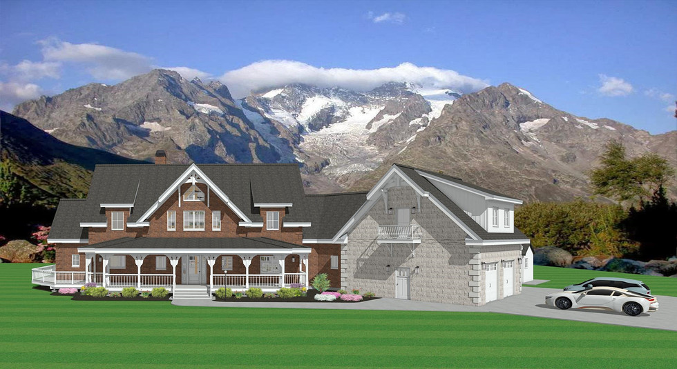 We took a poll from some of our viewers, inquiring what architectural style they would like to see us create and post on our web site. In lieu of mixed feedback that requested various popular material types, we have opted to show this new design in 4 popular materials selections. Included are brick (featured), along with a small sampling handcrafted log, composite lap siding, and metal siding.